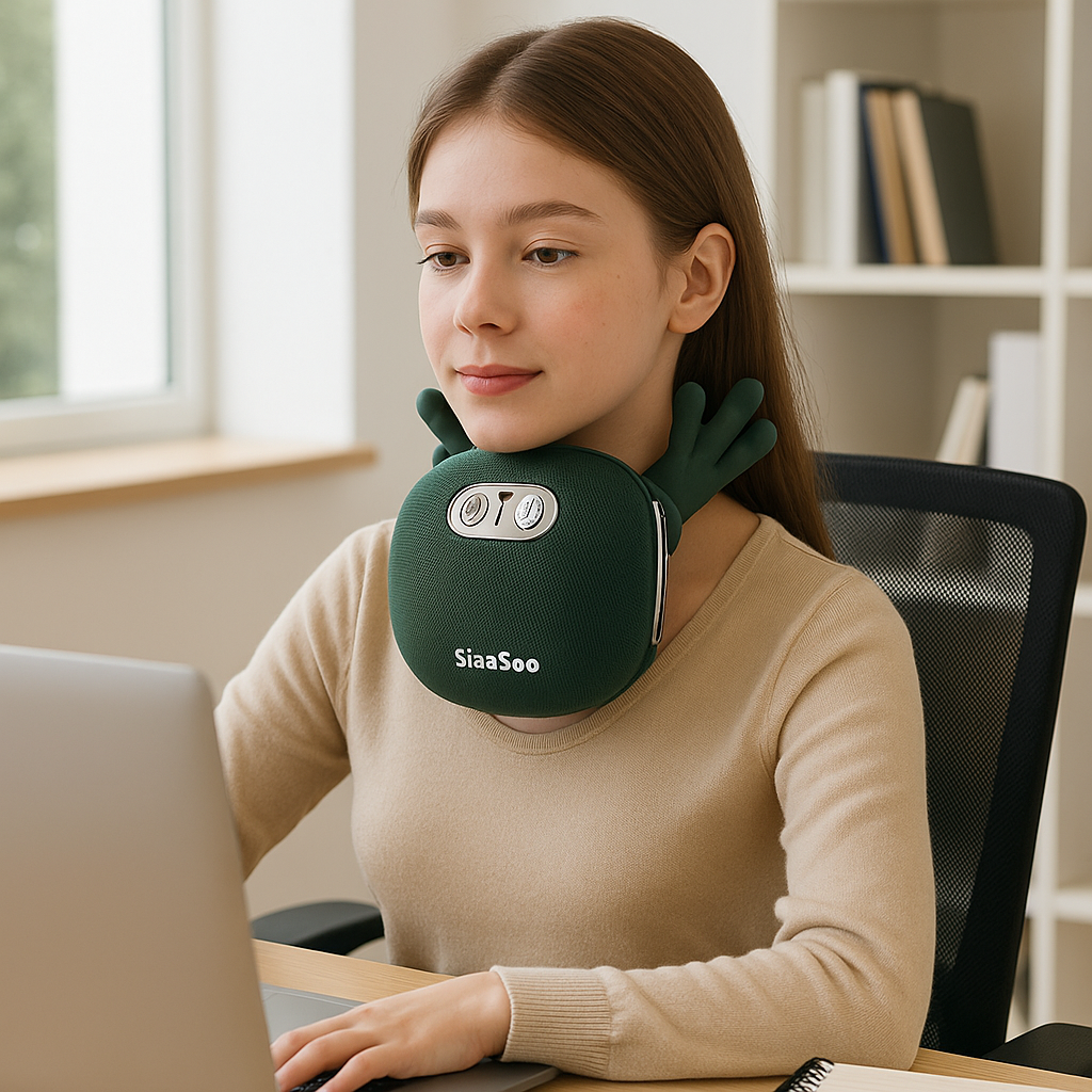 Unwind with deep-kneading shiatsu massage and soothing heat—wireless, hands-free, and designed for comfort on the go.
